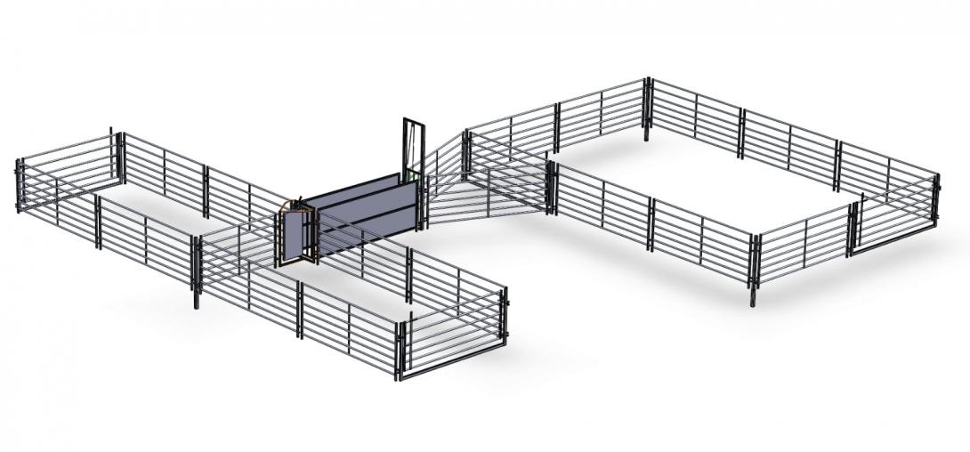 This System have a combined capacity in the race, forcing pen and gathering pen for holding a minimum of 100 adult sheep and have the ability to fit footbath in the race